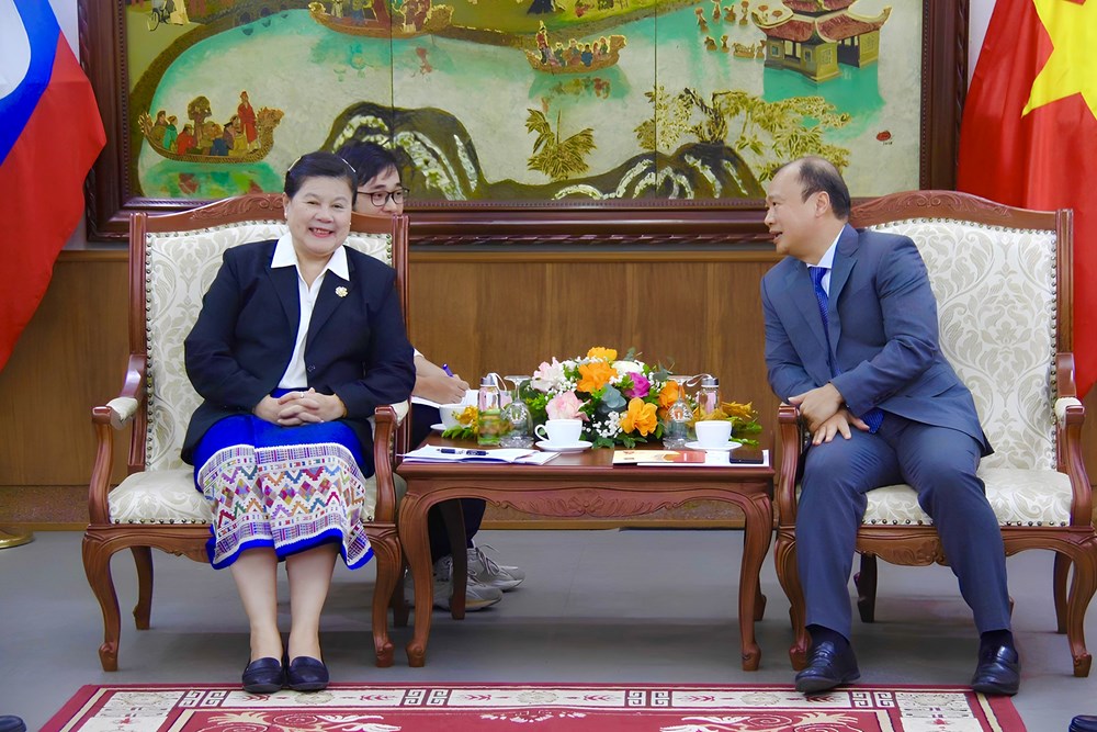 Mở đầu buổi làm việc, Phó Trưởng Ban Tuyên huấn Trung ương Đảng Nhân dân cách mạng Lào Vilavone Phanthavong trân trọng cảm ơn sự đón tiếp thân tình, chu đáo từ phía Bộ VHTTDL và cá nhân Thứ trưởng Lê Hải Bình dành cho đoàn.