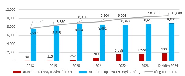 Theo thông kê quản lý nhà nước, đến hết năm 2023, toàn thị trường có 35 doanh nghiệp có Giấy phép cung cấp dịch vụ truyền hình trả tiền, trong đó có 23 doanh nghiệp đang cung cấp dịch vụ truyền hình trả tiền truyền thống (truyền hình cáp: tương tự, kỹ thuật số, IPTV, truyền hình số mặt đất, truyền hình qua vệ tinh, truyền hình di động) và có 21 doanh nghiệp cung cấp dịch vụ phát thanh, truyền hình trên mạng Internet (OTT TV). Tổng thuê bao truyền hình trả tiền đạt 21 triệu, tăng 14% so với hết năm 2022 (18,3 triệu thuê bao); trong đó thuê bao OTT TV là 7,4 triệu thuê bao tăng trên 33% so với năm 2022 (5,56 triệu). Doanh thu thuê bao cả năm 2023 đạt 10.305 tỷ đồng, tăng 3,8% so với năm 2022 (9.926 tỷ); trong đó doanh thu OTT TV là 1.688 tỷ đồng, tăng 8,3% so với năm 2022 (1.558 tỷ đồng).