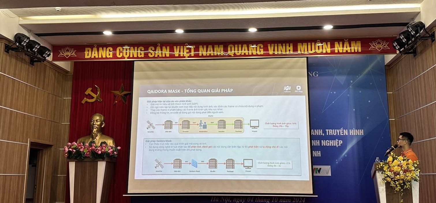 Trong khuôn khổ hội thảo, một số công nghệ mới đã được giới thiệu đến đại biểu. Chuyên đề ứng dụng AI trong biên tập, rà soát nội dung của Công ty Cổ phần Viễn thông FPT đã cung cấp giải pháp công nghệ thời gian thực, biên tập nội dung theo yêu cầu cung cấp trên dịch vụ.