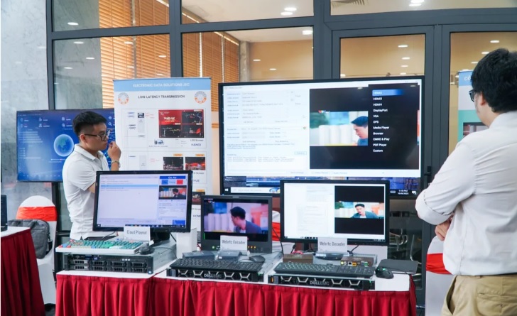 Các gian hàng trưng bày giới thiệu nhiều giải pháp và thiết bị tiên tiến, thể hiện xu hướng hội tụ giữa công nghệ truyền thống và công nghệ số hiện đại trong sản xuất, lưu trữ và phân phối nội dung truyền hình.